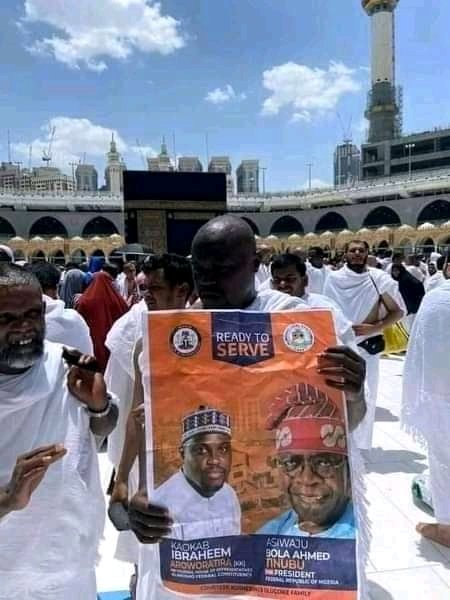 An eyewitness, Murtala Adamu Jega, a Nigerian who also performed the lesser Hajj at the time said, “I’m a witness; I saw them lift Bola Tinubu’s posters at the holy Kaaba.